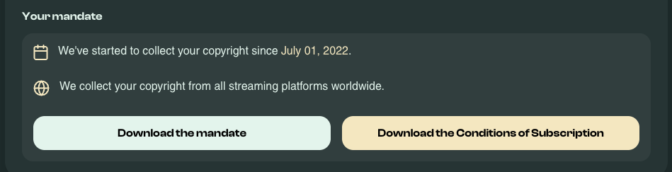 - On this page, you will find the start date of your contract and be able to download the mandate and the subscription terms.